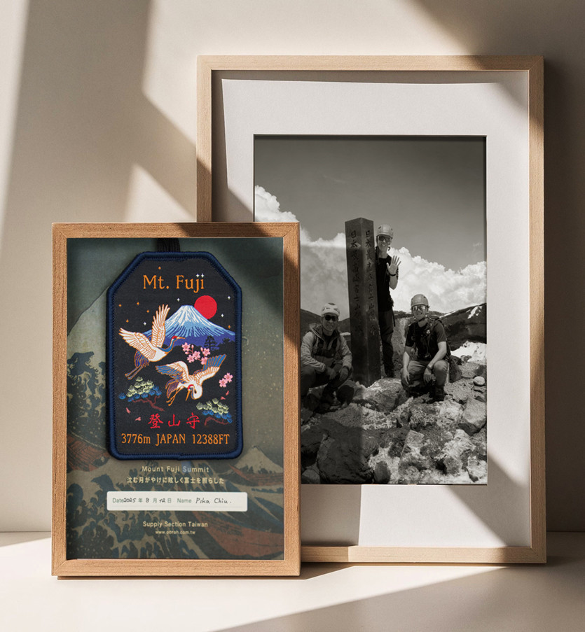 臂章套裝中包含一張具有書寫登頂時間與簽名處的紙卡,可以放入明信片大小的像框中,即可做為居家擺設,時時紀念那份達成人生清單時的感動。