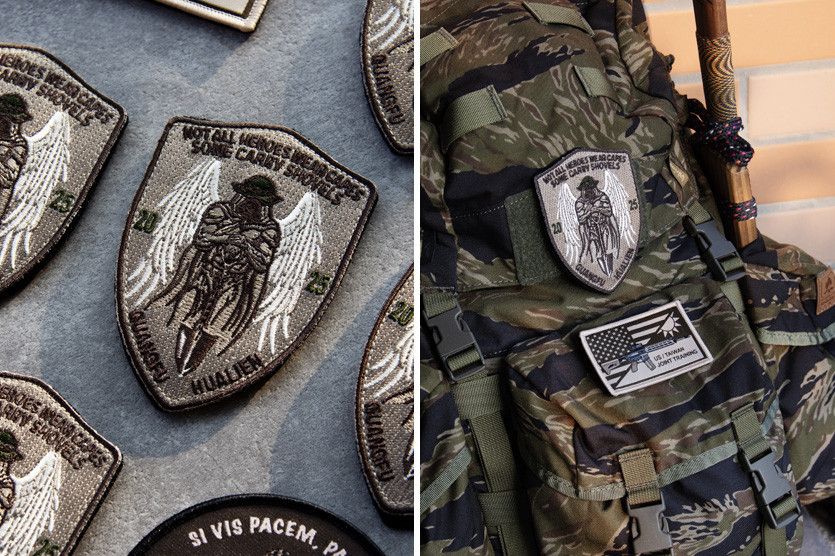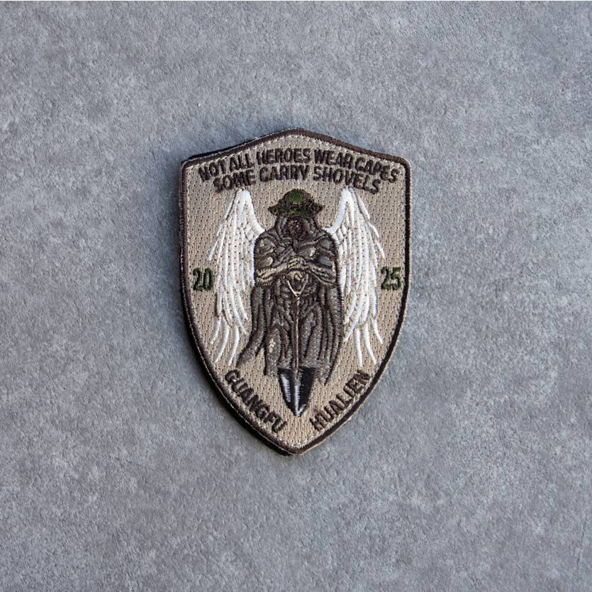 臂章外型為鏟子的形狀,圖像概念來自美國空軍 PJ 戰場天使之翅,上方英文涵意為:不是所有英雄都穿著披風,有些可能拿著鏟子。