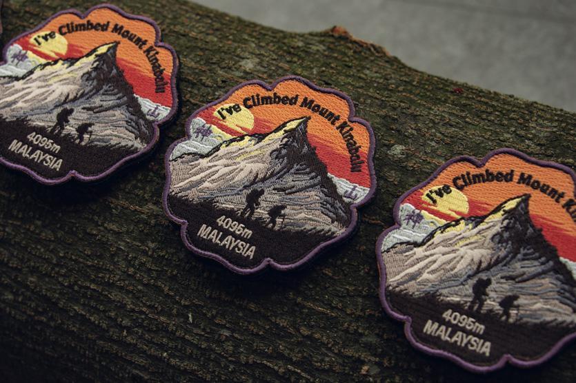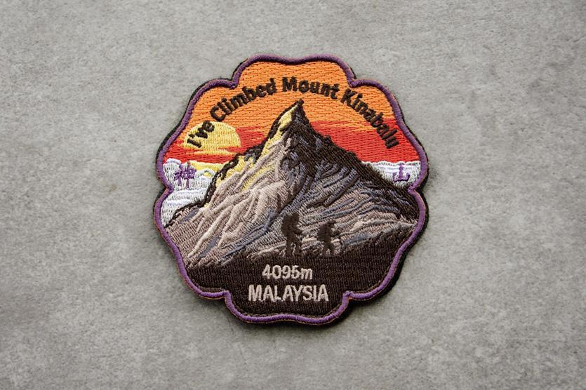 這款神山紀念章的設計中,我們使用了神山國家公園著名的珍稀植物:大王花 Rafflesia 作為布章的外型輪廓,並在圖騰中繪製了著名的羅斯峰(Low's Peak)、雲海、夕照與登山者,文字則描述了造訪紀念、海拔與國家名,整體延續 Supply Section 擅長的設計氛圍感與象徵意義。